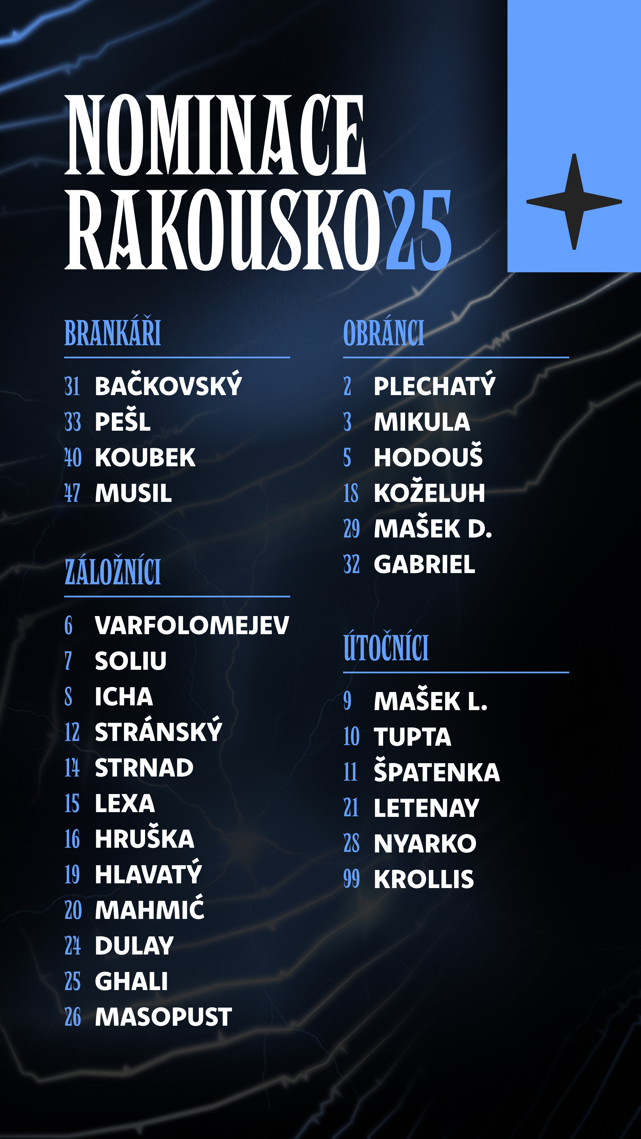 Do Rakouska naopak odcestovali Hugo Jan Bačkovský a Ľubomír Tupta, kteří se vrátili po jarním hostování ve slovenské, respektive polské nejvyšší soutěži. Jejich budoucnost se ještě bude řešit. V nominaci nechybí nikdo z nováčků ani další dva navrátilci z hostování, Milan Lexa a Lukáš Pešl. Do Aigenu už jedou i Vojtěch Stránský a Josef Koželuh, kteří zatím měli volno po účasti na EURO U21.
