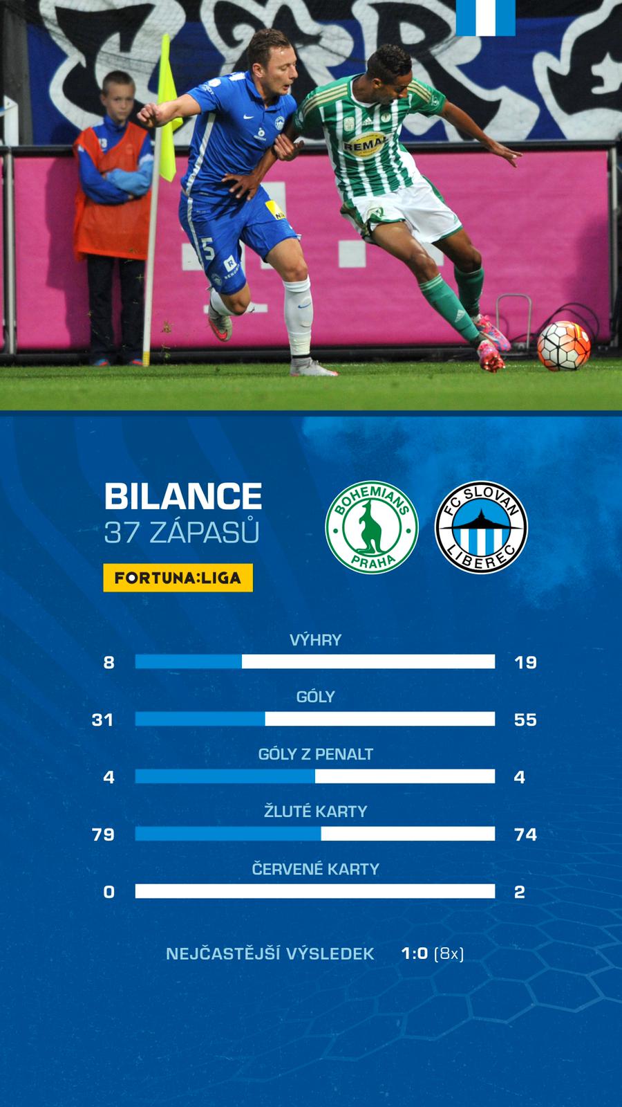 První vzájemný duel s Bohemians skončil na podzim U Nisy remízou 1:1. Trefili se Jhon Mosquera a Matěj Pulkrab. Slovan do utkání vstoupí se sérií tří duelů bez porážky, když kromě výsledku 2:2 se Spartou porazil Opavu 2:0 a Mladou Boleslav 1:0. O víkendu nebude moct nastoupit Michal Sadílek, který naposledy obdržel osmou žlutou kartu.