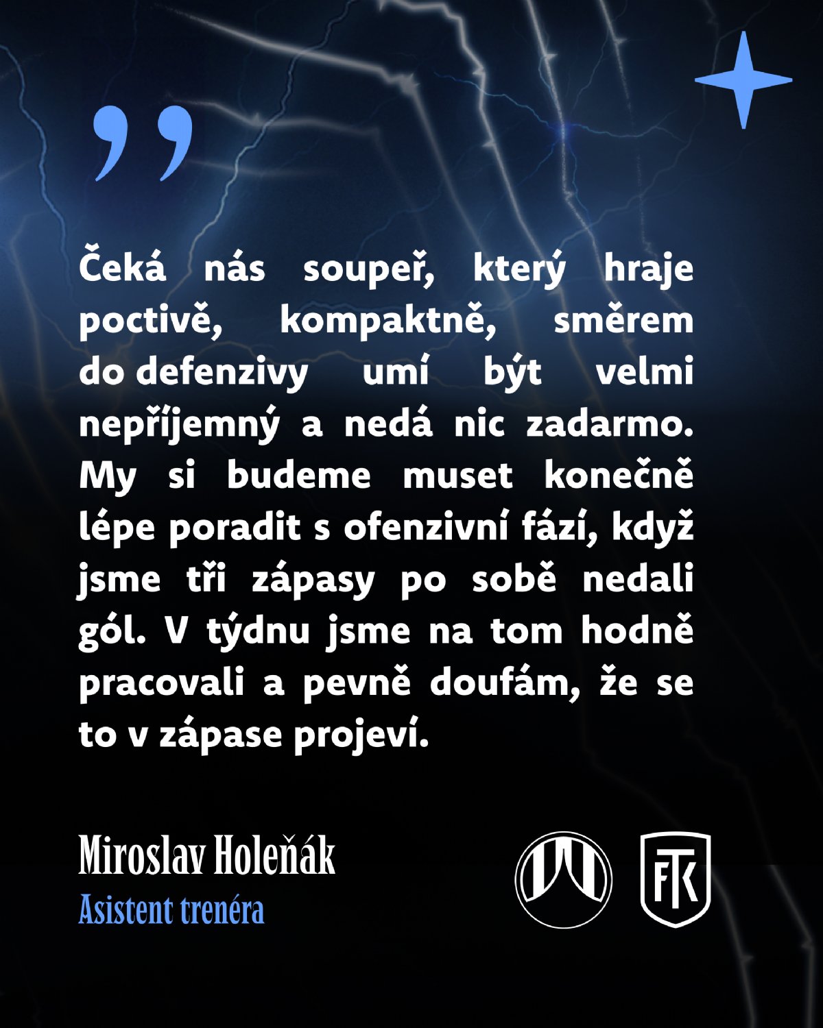 Nejlepším střelcem týmu Zdenka Frťaly je osmigólový Michal Bílek. Za ním je trojice Matyáš Kozák, John Auta a Matěj Pulkrab se třemi zásahy. Nejvíce asistencí má pak Denis Halinský, a to dvě. Ten ale v neděli nenastoupí, protože proti Dukle inkasoval čtvrtou žlutou kartu a čeká ho povinná přestávka. Prostor mezi třemi tyčemi nepřetržitě střeží Matouš Trmal, jenž nechyběl v sezoně ani minutu a v pětadvaceti zápasech udržel hned deset čistých kont.