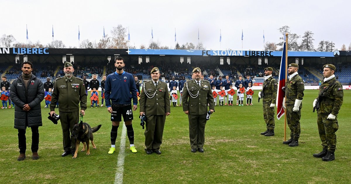 Liberec - Před jubilejním tisícím ligovým zápasem Slovanu došlo v rámci Kola válečných veteránů, které přichystala LFA ve spolupráci s Ministerstvem obrany, k ocenění nadrotmistra Marka Zugara, německého ovčáka Arga, četaře Patra Kadlece a Jakuba Elise.