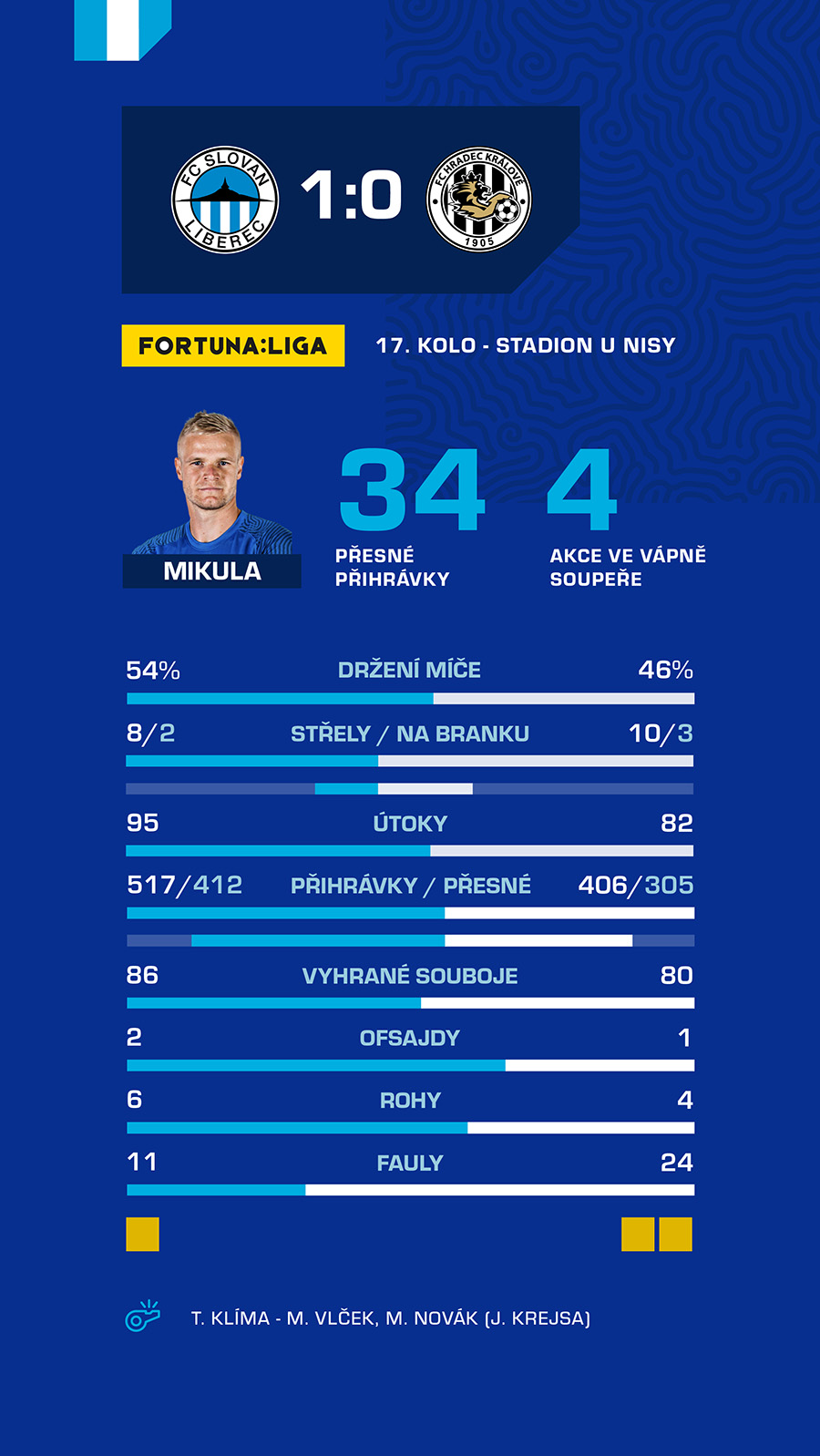 Liberec – Těsná výhra, důležité tři body. Slovan vyhrál páté z posledních šesti utkání, Hradec udolal 1:0. Potvrzují statistiky výhru? A kdo vůbec nejčastěji přihrával míč směrem k soupeřově bráně? Další díl tradiční rubriky Statistiky je tu a tentokrát se bude linout v celkem jednoznačném tónu.