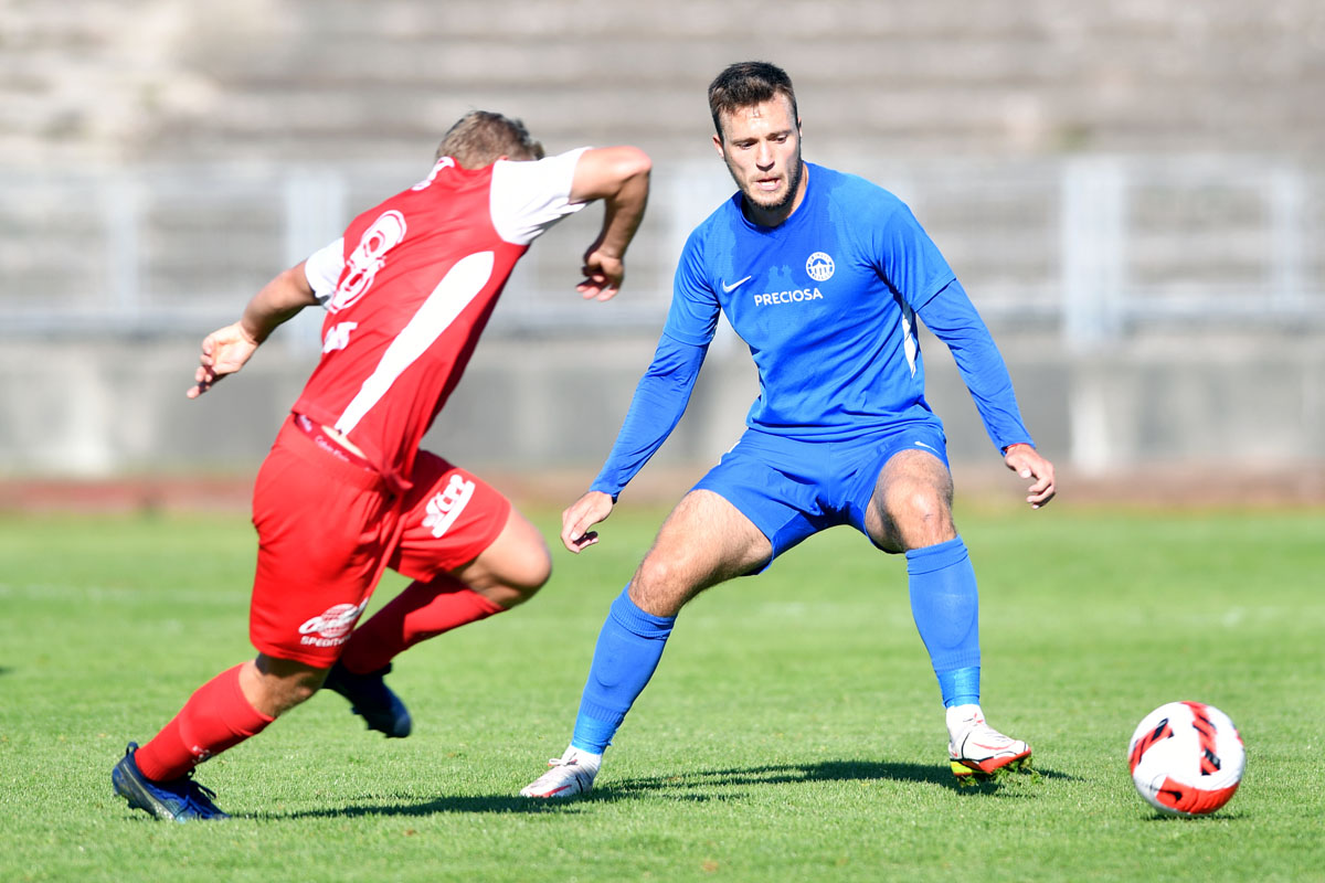 Ačkoliv byli v úvodu utkání aktivní především hosté, jejich útočné snahy nic nepřinesly. První branka totiž padla již v osmé minutě po naší akci. Z pravé strany propálil brankáře Dominik Gembický, 22letý univerzál, který v září podepsal novou smlouvu s naším klubem. Poté se hra poměrně vyrovnala, střelecké pokusy přicházely od obou mužstev.